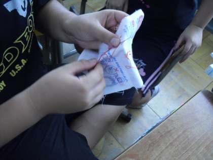 玉止め,玉結び,縫い方など学習しています。