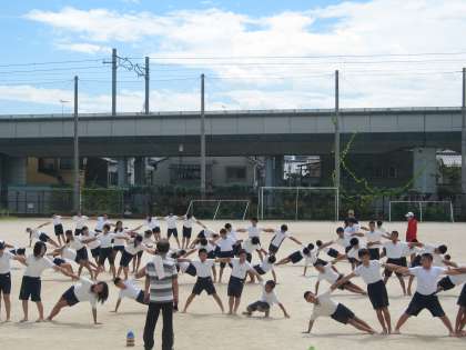 今日は運動場で練習です。