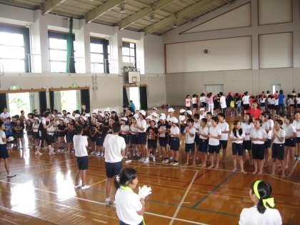 中間休みに,赤・白組ともに,体育館で応援の練習を行いました。