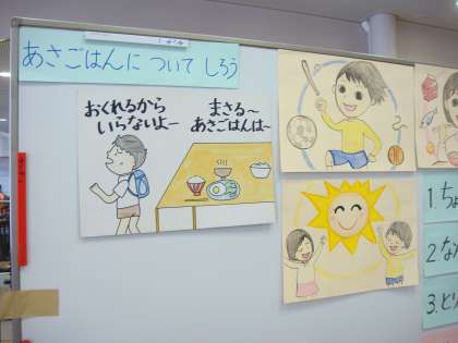 給食前に「朝ごはん」について学習しました。
