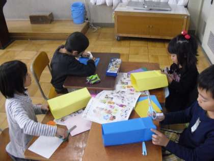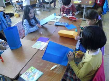 折って,のりで貼って,つぶして,切って,また貼って・・・・そうすると,はこが出来上がりました。