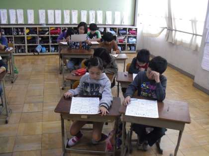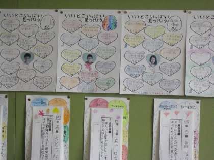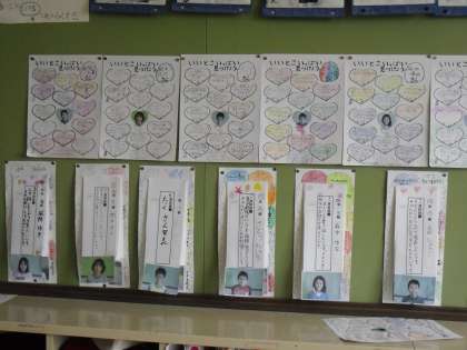 学級活動で友達のいいところ見つけ,そのことを紙に書き合いました。すぐに書ける友だちもいますが,書く手が止まってしまう友達もいましたが,改めて,友達の良さを実感したり,気づいたりできる時間となりました。もっと交流を深めていこうということを感じた子もいました。もらった寄せ書きを読んでいる子どもたちの表情が,うれしそうに笑みを浮かべていました。読んだ後,「自分のいいところをこんなに見つけてくれてくれてありがとう。これからもよろしく。」「このように友達から思ってもらっていたなんて,とってもうれしいです。もっと友達にいいところを見せていきたいです。」という言葉を返していました。このような取組を重ね,友達との絆をさらに深めてくれることを願っています。