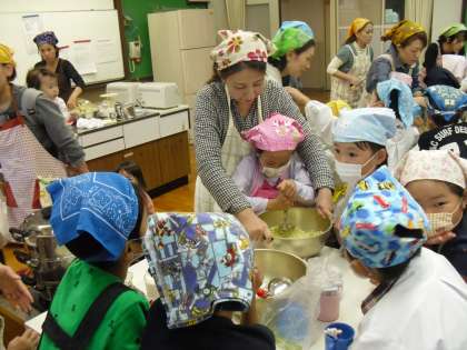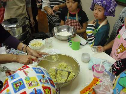 学年活動で、スイートポテトとさつまいも蒸しパンを作りました。