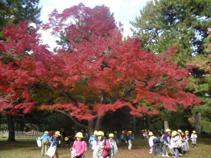 真っ赤に紅葉したもみじを見て,子どもたちも「わぁ〜きれい!」と感動した様子でした。