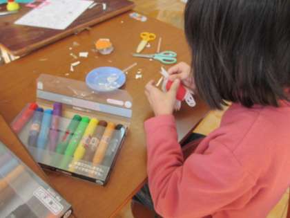 今日は,亀すくいに使う亀を作りました。トイレットペーパーの芯を切るのが,かたくて難しそうでしたが,楽しんで作っていました。可愛い亀ができました。