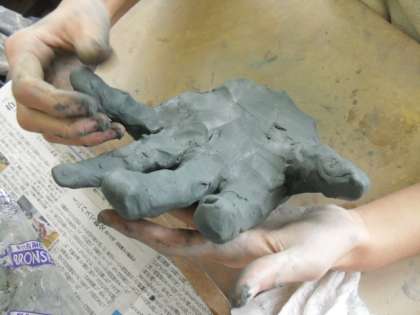 ブロンズ粘土で立体作品を作っています。モデルは自分の『手』。久しぶりの粘土の感触を味わいながら,黙々と制作に取り組んでいます。