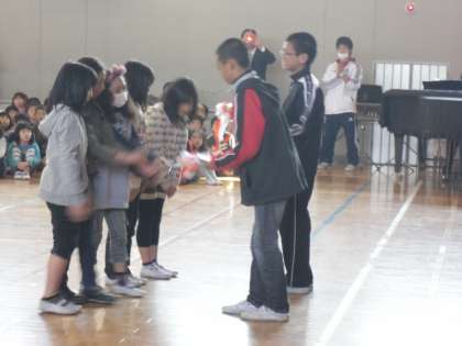 6年生を送る会がありました。4年生は,「あなたにありがとう」の歌を贈りました。この歌には♪いつも励ましてくれたあなたにありがとう ♪あなたがいたからがんばってこられた という歌詞が入っています。