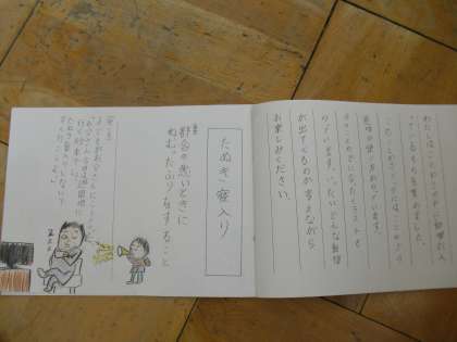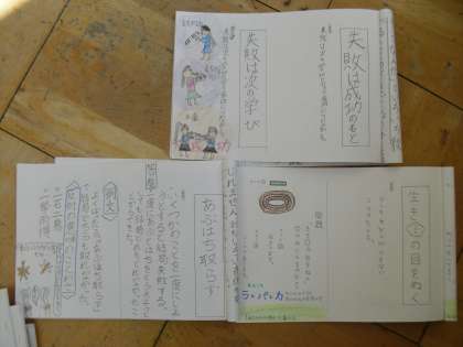 国語の学習で「ことわざ」を学習しました。今までにもつかってきていることわざが結構ありました。でも,ことわざ辞典を広げると,聞いたこともないことわざがたくさんありました。調べていくと,同じ意味のことわざや,反対の意味のことわざがあることに気付きました。また,数字や動物がよくつかわれていることにも気付きました。そこで,ことわざクイズ,ことわざを使った短文作り,自作のことわざなど,自分のアイデアを使った楽しいことわざブックを作りました。楽しくことわざが学べました。