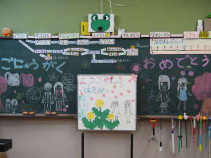 1年生の教室の掲示板の様子です。6年生が準備をしてくれました。