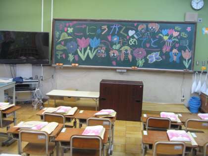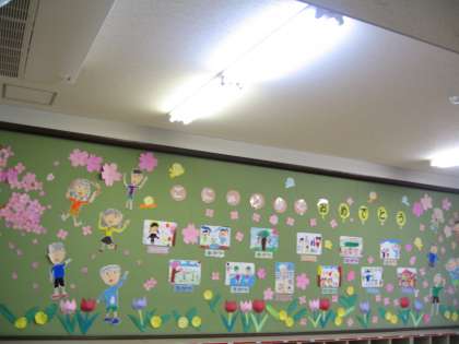 1年生の教室に,6年生が一生懸命に絵を描いてくれました。