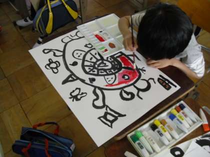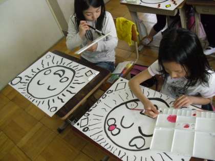 「太陽はにこにこしているかな。」「地球もかこう!」と言って,子どもたちはとても楽しそうに取り組んでいました。