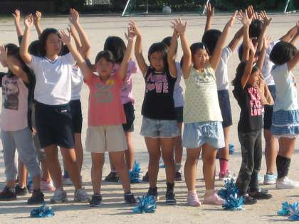 運動会に出演するダンス部は,運動場で練習を行いました。