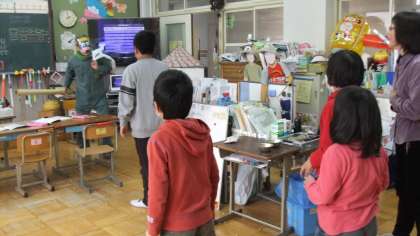鬼が教室にやってきて,みんなとても驚いていました。