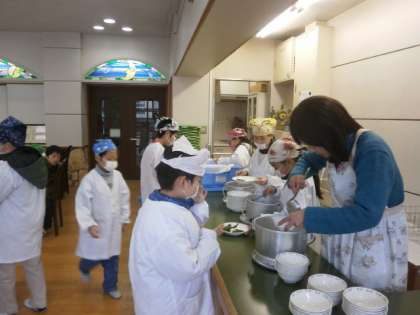 給食前に「ごはんの大切さを知ろう」をテーマに話をしました。