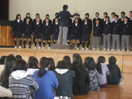 中学校の体育館で,合唱コンクール金賞クラスの合唱を聞きました。すばらしい合唱でした。6年生の子どもたちは,美しいハーモニーに聞き入っていました。