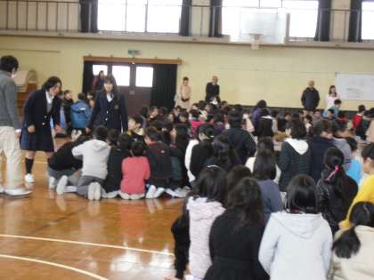 中学校生活の様子をビデオで紹介してくれました。そのあと,猛獣狩り・西ノ京バージョンで他の学校の人たちと仲良くなりました。中学校が待ち遠しくなりました。