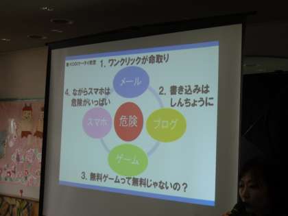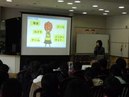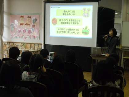 携帯電話会社の方をお招きして,ケータイ教室を行ないました。正しい携帯電話の使い方を教えていただきました。