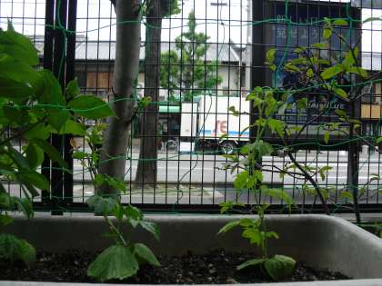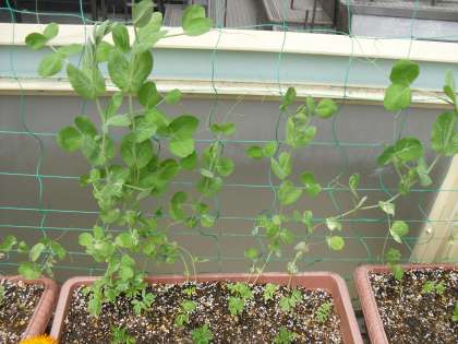 ゴーヤやエンドウ,マリーゴールド,ふうせんかずらなどもぐんぐん大きくなってきました。