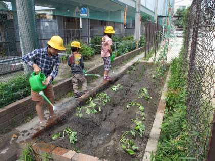 5月20日の火曜日に,畑に野菜の苗を植えました。今年は,ミニトマトとピーマンとさつまいもを植えました。「大きくなあれ」と,願いを込めてお水もたっぷりやりました。夏や秋に,たくさん収穫できるといいなあ。
