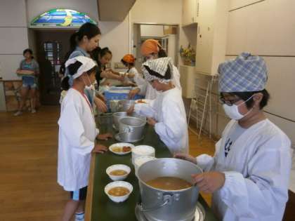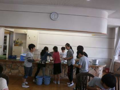 ※いろいろなおかずのおかわりにたくさんの子どもたちが並んでいました。