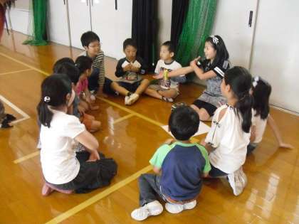 縦割り活動を通して,高学年には,リーダーとして活動することの喜びを味わわせ,下級生には,集団で活動する楽しさや協力して活動することの大切さを感じ取ってほしいと願っています。