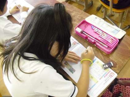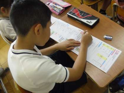 朝の8時35分〜8時50分までは,ぐんぐんタイムの時間です。各学年,決まった課題に取り組んでいます。3年生ろ組は,国語の漢字ドリルに取り組んでいました。集中してしっかり学習しています。