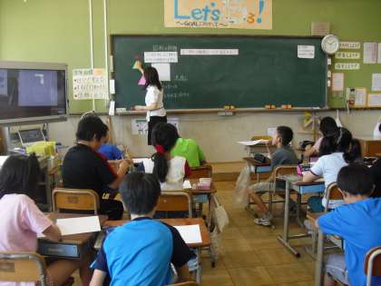 5年生は,国語と算数の学習の時間を参観していただきました。自分の考えを述べながら,作品の暗唱に挑戦していました。