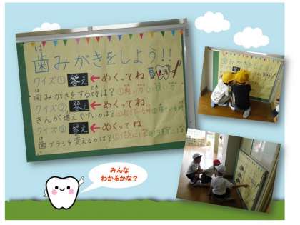 保健委員会の児童が歯と口の健康週間にちなんでポスターを作ってくれました。クイズ形式の楽しいものが出来上がりました。