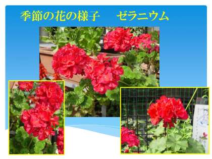 体育館の北側には,教職員が植えたゼラニウムが見事な花を咲かせています。丸太町通りを行き交う人が,思わず足を止めてじっくり見ていかれます。