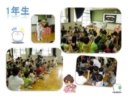 1年生は歯科衛生士さんが連れてこられたお友達(人形)の口の中の,食べカスいっぱい,歯垢べっとりの様子をみて,歯みがきをしないといけない。と実感しているようでした。