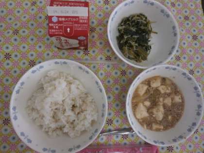 麦ごはん・牛乳・マーボ豆腐・ほうれん草ともやしのいためナムル