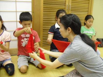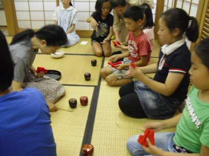 お茶クラブも今回で3回目になりました。今年度は10名で活動をしていますが,新たに入部した4年生3名・5年生1名はすでにお茶の経験のある先輩や地域の指導者の方に教えていただきながら作法を学んでいます。