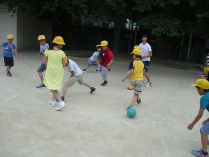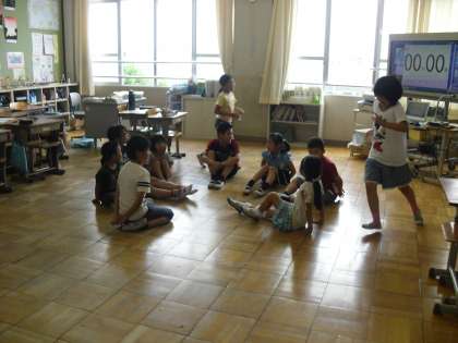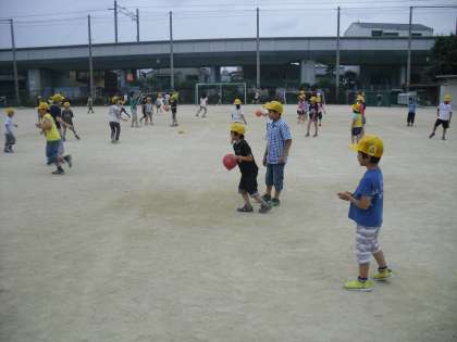 教室ではハンカチ落としゲームを楽しみました。運動場では,鬼ごっこ,ドッジボール,転がしドッジなどで遊びました。上級生が下級生にボールを譲るなど温かい姿がみられるようになってきています。