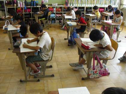 3年生もだんだん問題が難しくなってきます。でも.やる気満々で取り組んでいました。