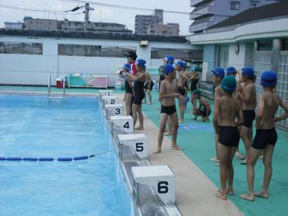 3,4校時は,3,4年生の水泳学習です。準備運動をして体を水に慣らした後,自分の泳力に合わせて泳ぐ練習をします。目あてに向かってしっかりと学習できていました。