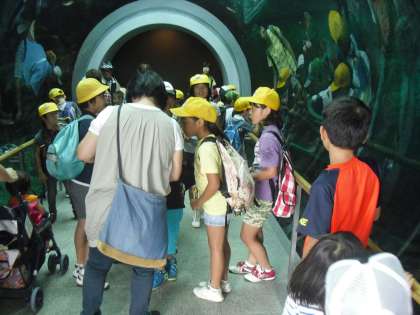 6日(水)38名の子どもたちが自然観察会に参加しました。行先は,琵琶湖博物館及び水生植物園です。バスで到着した後,学年ごとに琵琶湖博物館の見学をしました。「淡水の生き物たち」のコーナーでは琵琶湖にいる魚だけでなく,世界の湖にする淡水魚も見ることができました。