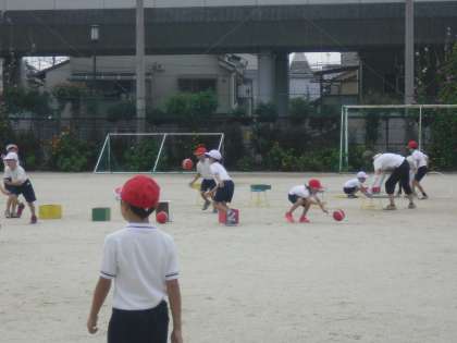 今日は,2年生と1年生は障害物競走の練習に取り組みました。まず2年生が見本を見せます。練習をするたびに上手になり,スピードが上がってきました。