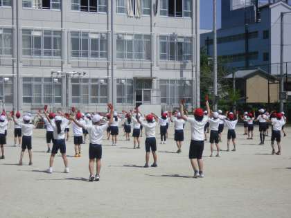 場所を覚えて入場した後は,曲に合わせて踊ります。大きな流れは,しっかり覚えています。この後運動会まで,細かいところまで合うように練習を重ねます。