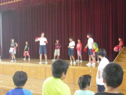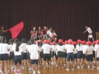 今日のハッピ—タイムは,運動に向けて色別の応援練習をしました。赤組は体育館で練習を行いました。徐々に大きな声が出て,練習も盛り上がります。当日は,最初から大きな声で応援できる力が必要です。練習の成果がどこまで出るか楽しみです。