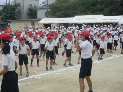 準備運動では,係の子どもたちのリードで体をほぐしました。リズムにのって元気よく踊りました。