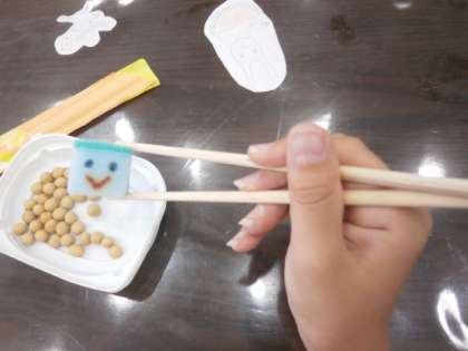 最後に豆はさみをして,これからもおはしを正しく使うように声をかけました。