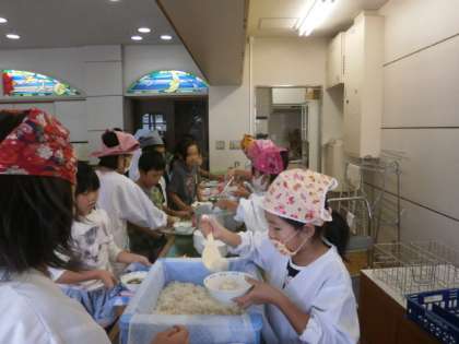 ※たらのピリカラいためは,下味をつけた「たら」を油で揚げます。たまねぎ・にんじんをいためて,さとう・トマトケチャップ・トウバンジャン・濃口しょうゆで味をつけたものと「たら」を合わせて仕上げました。
