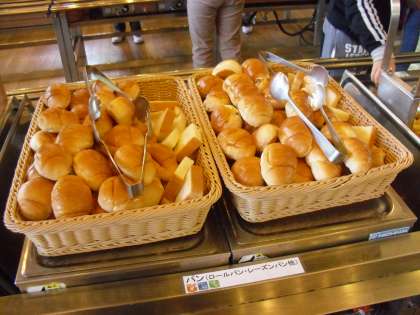 朝食は,バイキング形式です。パンかご飯かを自分で選んで食べます。何度もおかわりに行く児童も数多くいました。