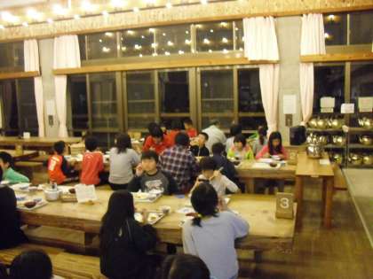 夕食はバイキングです。昨日と出される料理が少し変わりました。たくさん山道を歩いたからかしっかりと食べていました。