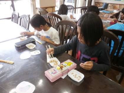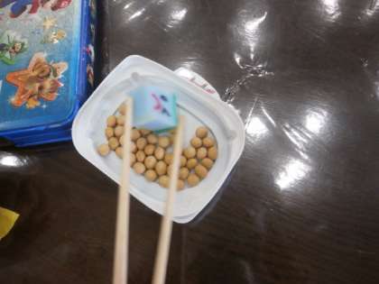 はしの語源や由来を考えたり,世界での食べ方やはしのマナーやルールについて考えたりしました。「最後に正しいおはしの持ち方」を知ってから,豆はさみをしました。