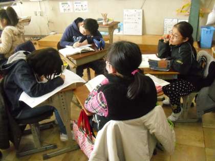 5年生は,「わらぐつの中の神様」の学習を中村先生と一緒に行っています。今日は,マサエの気もちの変容について調べ,なぜ変容したのかを話し合いました。子どもたちは教科書の中から見つけた根拠となる言葉をもとに,その理由を発表していました。