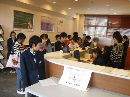 ショッピングする児童と仕事をする児童が交代しながら学習を進めます。はじめは,動きも応対もぎこちない感じですが,一生懸命に自分の役割を果たそうと頑張っていました。