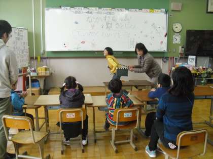 新しい友達と先生が増えた「は組」。今日は自己紹介をしました。子どもたちだけでなく,先生も発表です。上手にできてみんなでハイタッチをしていました。