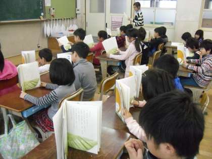 2年ろ組は,2時間目に国語の勉強をしました。今日は,初めて新しい本を広げて全員で音読をしていました。姿勢を正して,教科書を手にもって大きな声を出して音読できていました。