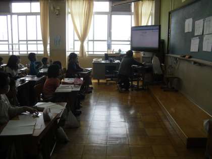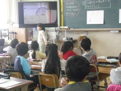 4年生は,算数の学習でした。分度器を使って角度をはかる学習です。前で上手に説明する姿が見られました。